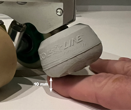 De rubberen remdoppen aan jouw rolschaatsen zijn onderhevig aan slijtage. De optimale afstand tussen de vloer en de onderzijde van de doppen is 10 mm (1 cm) of